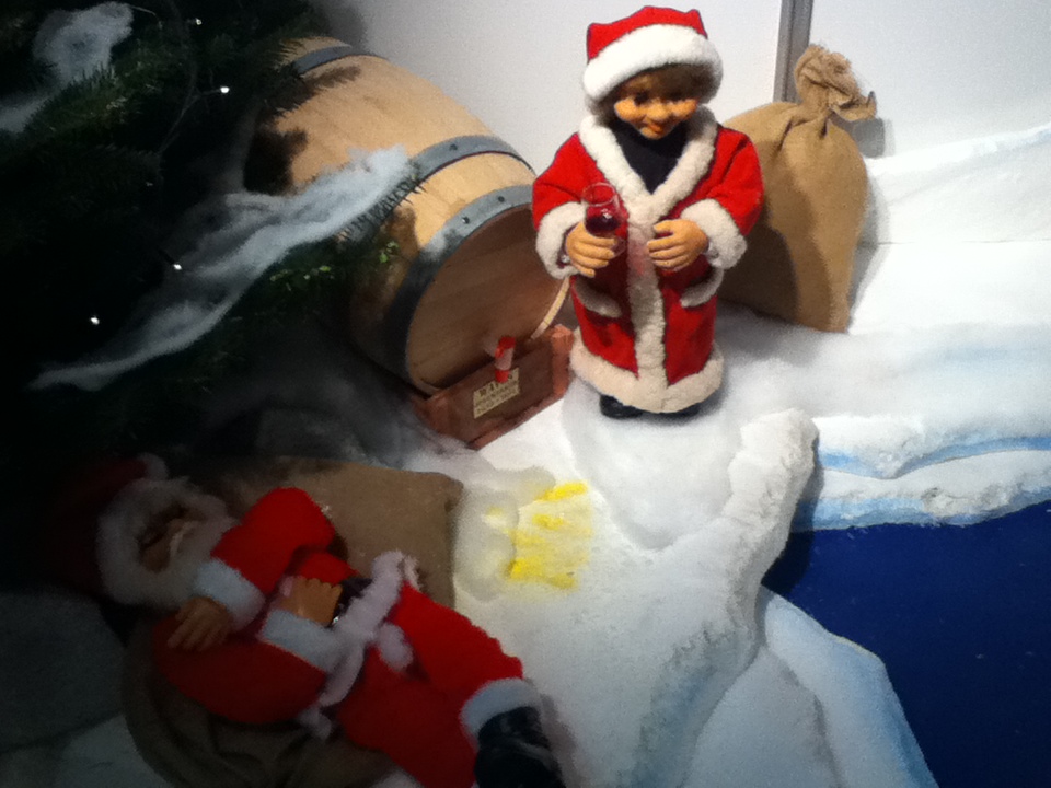 This one seems to have peed in the (fake) snow before falling into a drunken slumber