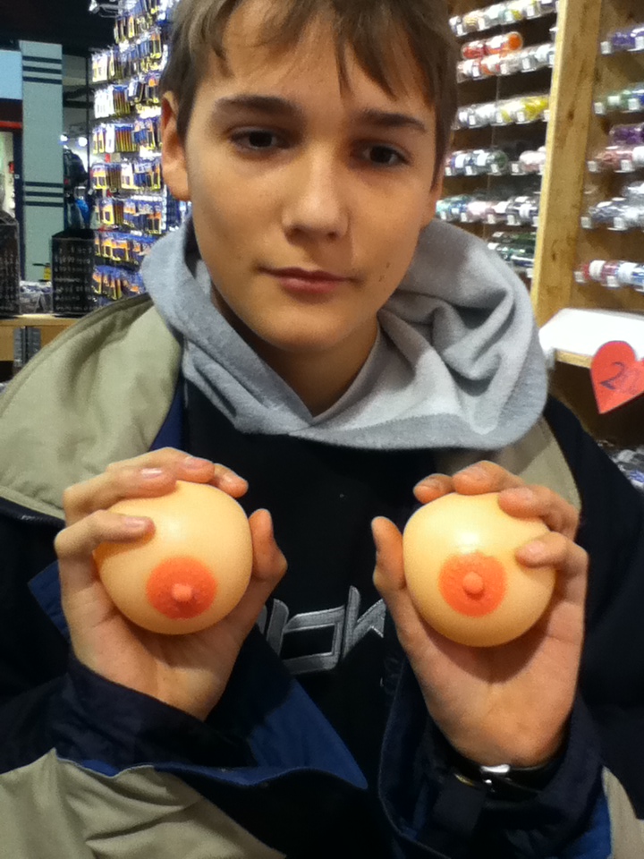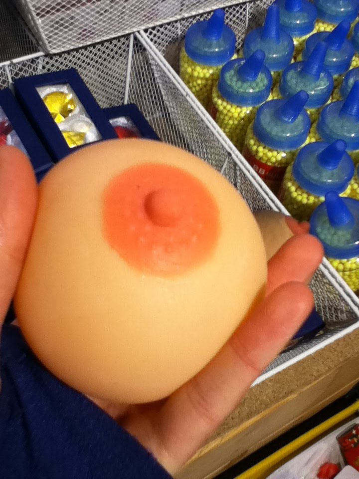 Lars and I went and explored some stores down town and found some really weird things, such as this boob-shaped stress ball: